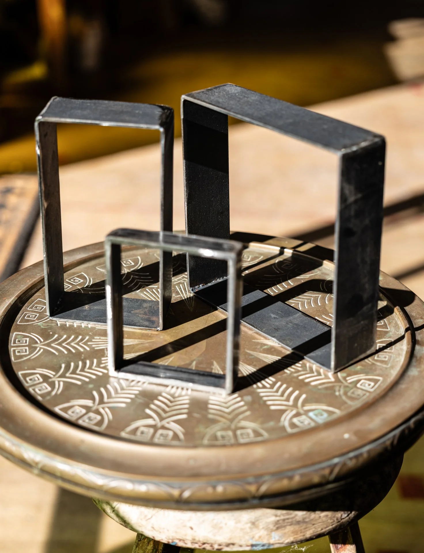 This collection of field sketches for the Fire Into Gold series began in the bush and were later refined in the studio. Instead of sketching in books or on paper, I chose reclaimed timber and acrylics on location. Working double-sided, it quickly became clear these pieces carried a presence far beyond the average sketch. Back in the studio, I finished and refined them into true exhibition works.